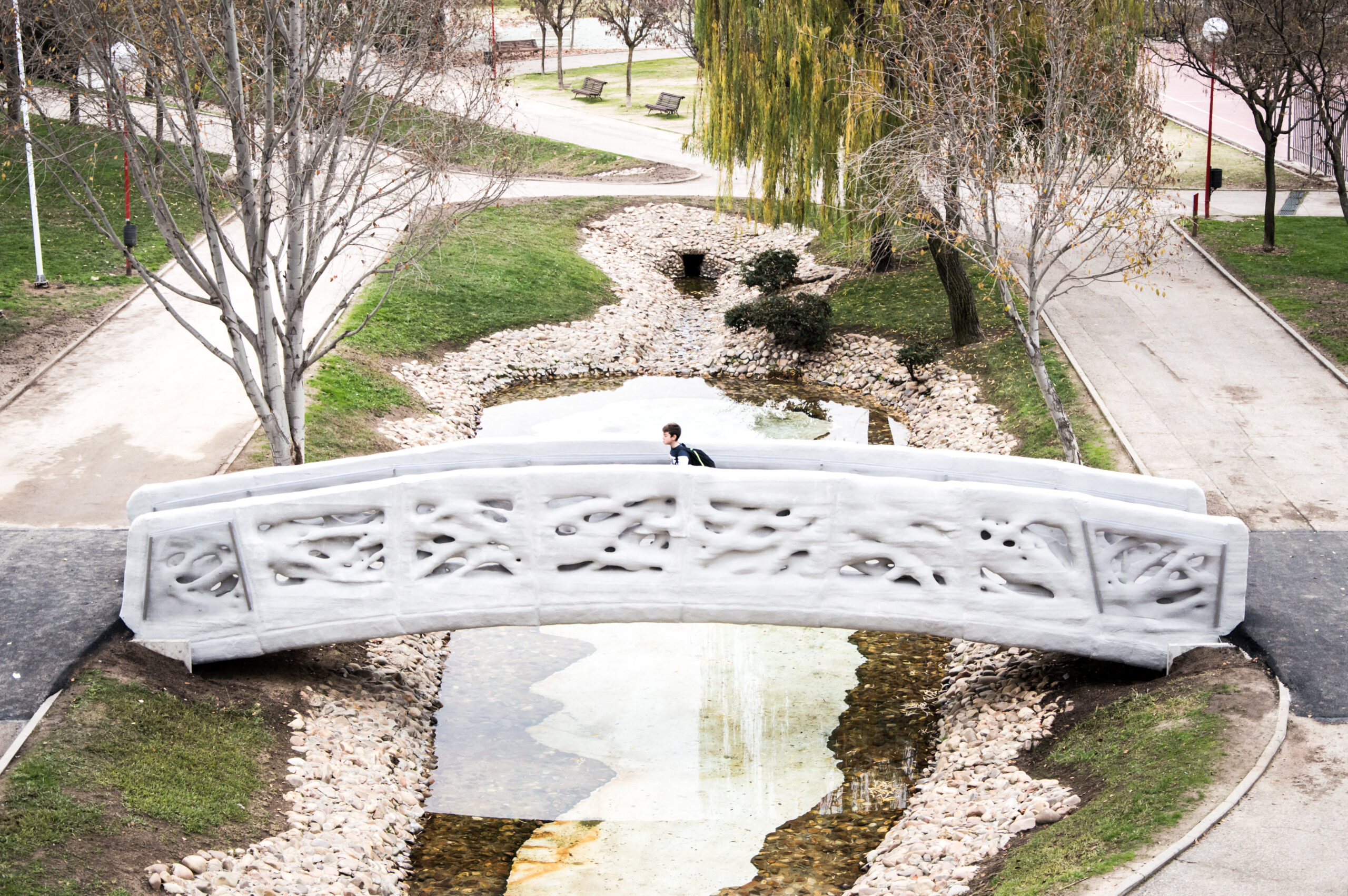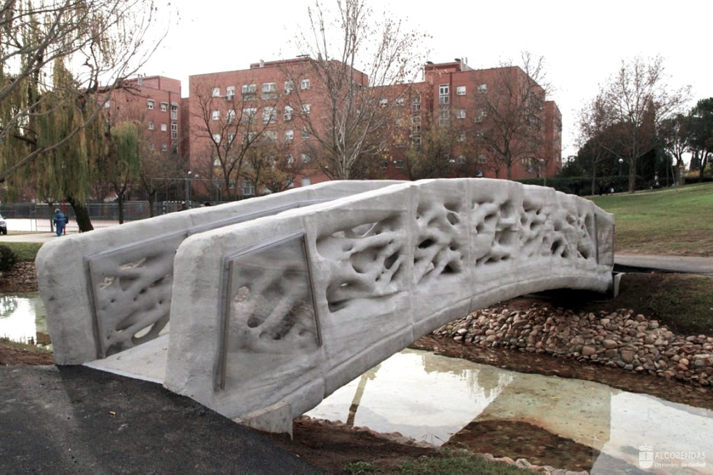 The 3D Printed Bridge in Alcobendas, Madrid, marks a groundbreaking step in the evolution of digitally fabricated infrastructure. Designed by IAAC and built in collaboration with ACCIONA, it is the world’s first 3D-printed pedestrian bridge in micro-reinforced concrete. Spanning 12 meters, the bridge integrates seamlessly into the Castilla-La Mancha urban park, offering both functional connectivity and a glimpse into the future of computationally driven public works.