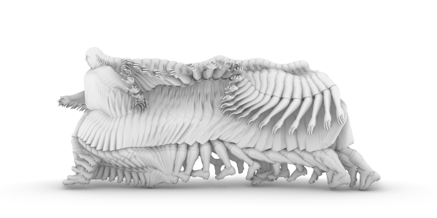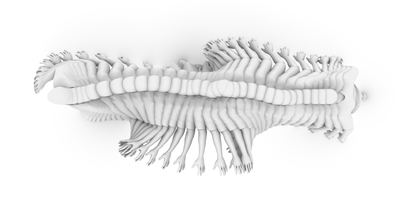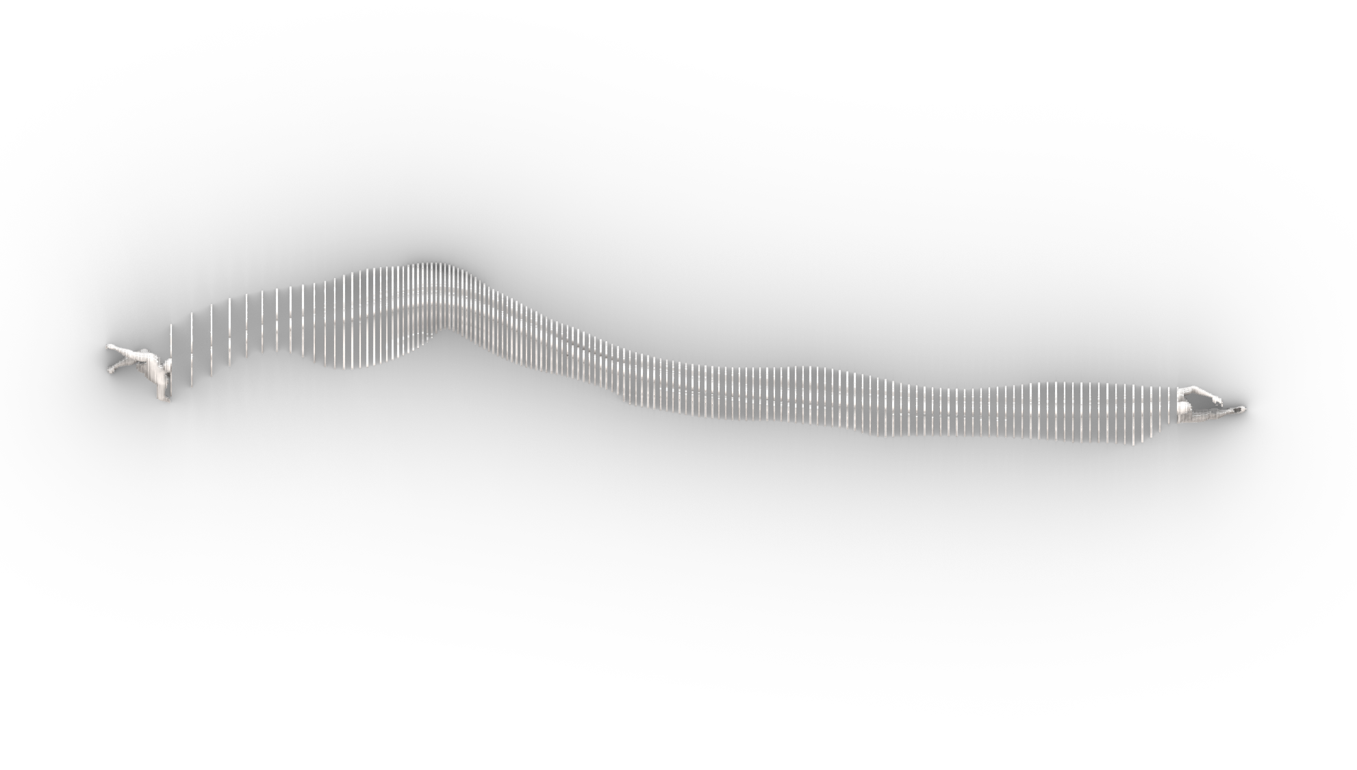 Once the animation was complete, we analysed regions of interest on the body to generate a cloud of spatial points that traced Messi’s motion through space. These were used to define the underlying geometry of the sculpture—an abstract surface carved from the trajectory of movement itself.