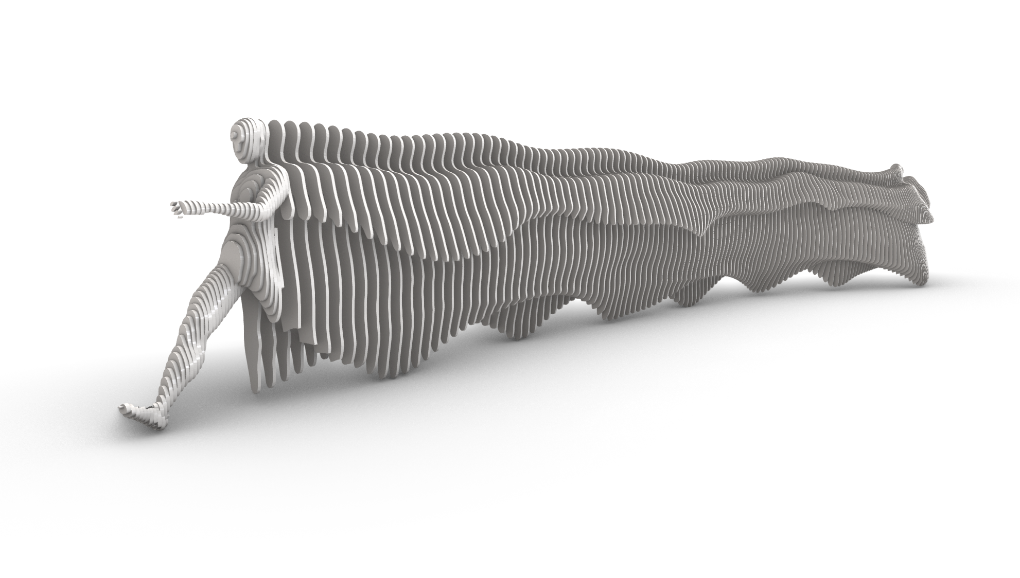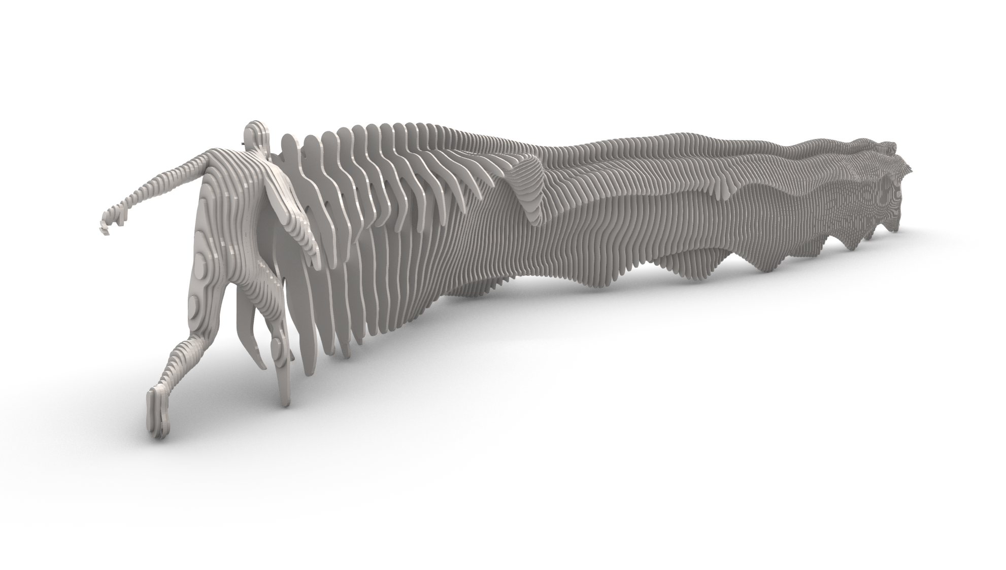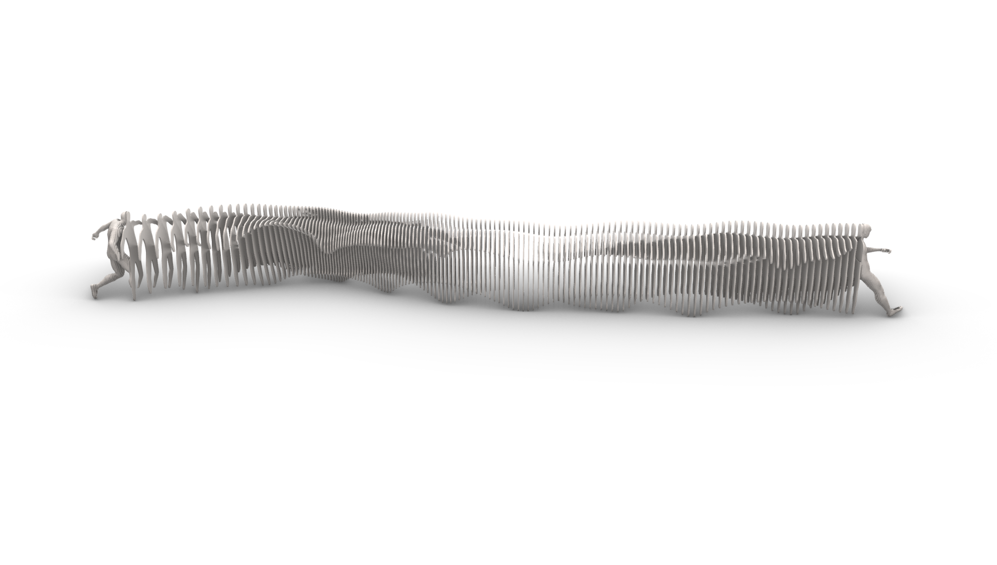 My contribution focused on transforming this movement into a buildable structure through parametric modelling and fabrication workflows. Using a blend of algorithmic design and manual refinement, we extracted a series of longitudinal slits that defined the formal language of the sculpture. Fabrication constraints—such as band behaviour, geometry coverage, and structural stability—were key to shaping the final design.
