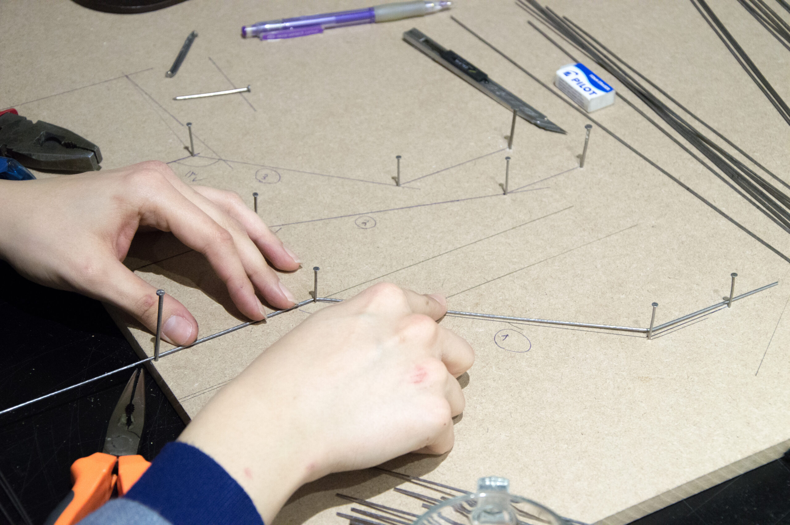 The structure of the workshop spanned two phases. The first emphasized fast, intuitive experimentation to generate ideas through drawing, digital modeling, and physical testing. The second phase culminated in the collaborative realization of a 1:1 architectural prototype, synthesizing digital and physical workflows.