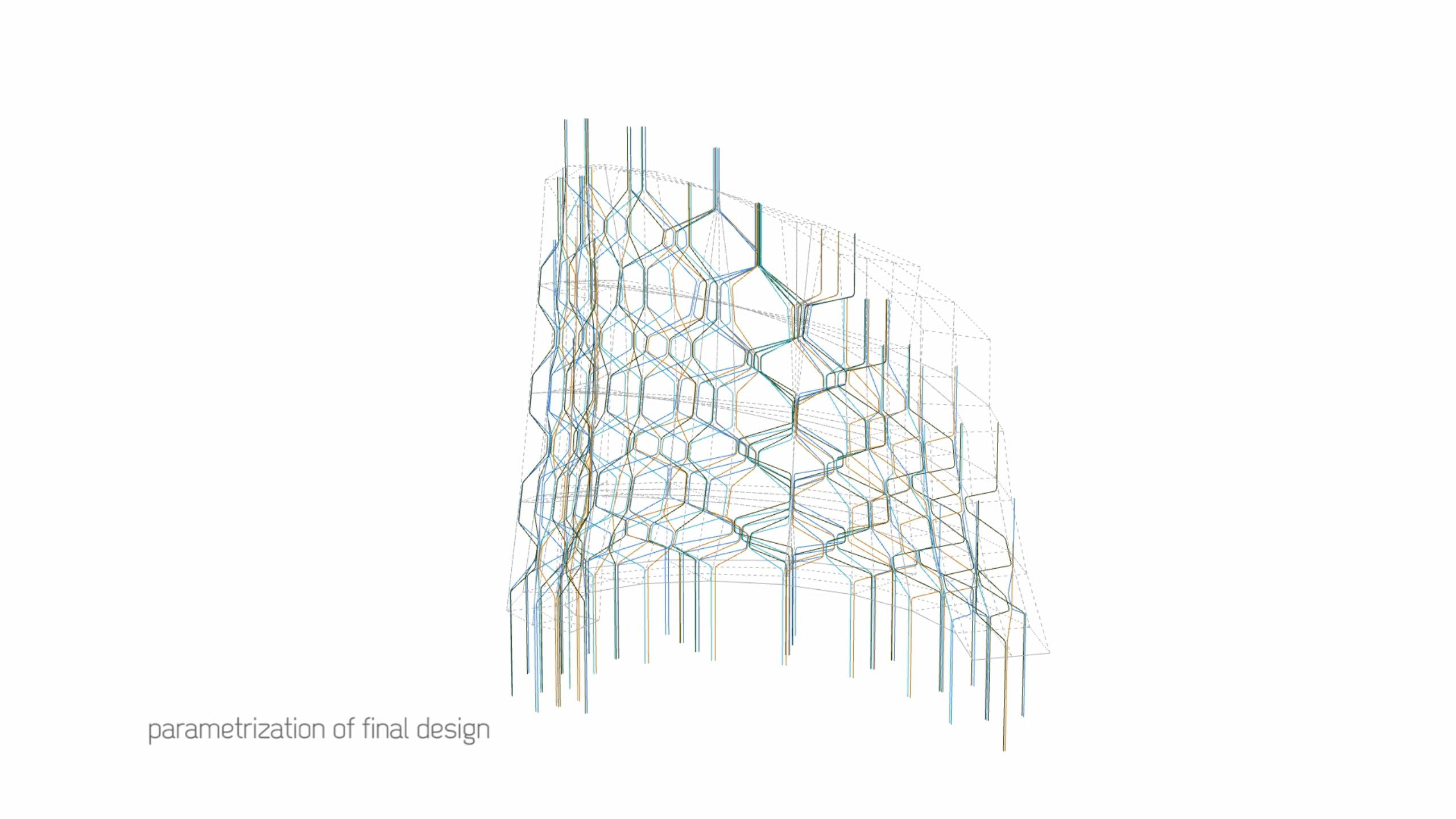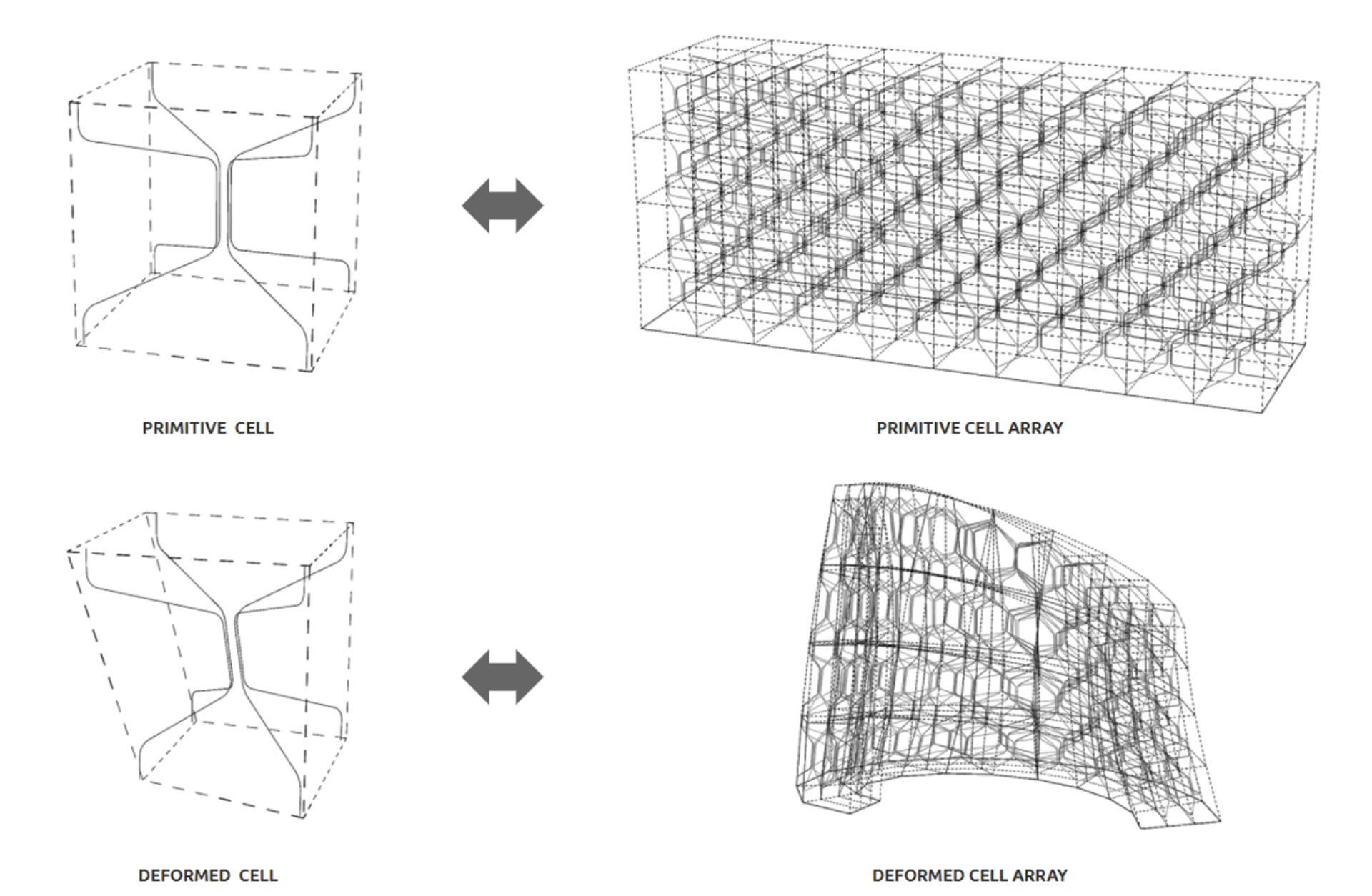 At the core of the computational process lies a modular system. A base unit was defined and propagated into larger assemblies using cellular arrays and morphing techniques. Attractor points informed local variations, introducing structural and spatial differentiation driven by contextual data. These variations were optimized through reparametrization to ensure fabrication feasibility, while maintaining design intent.