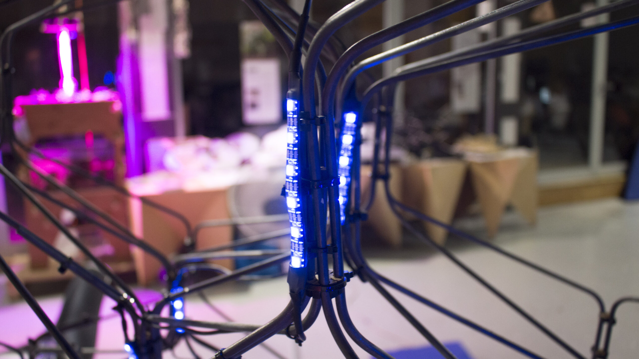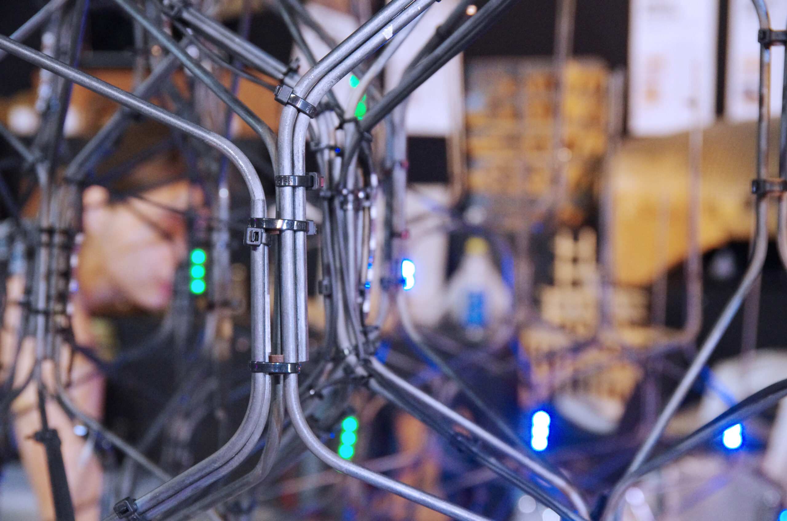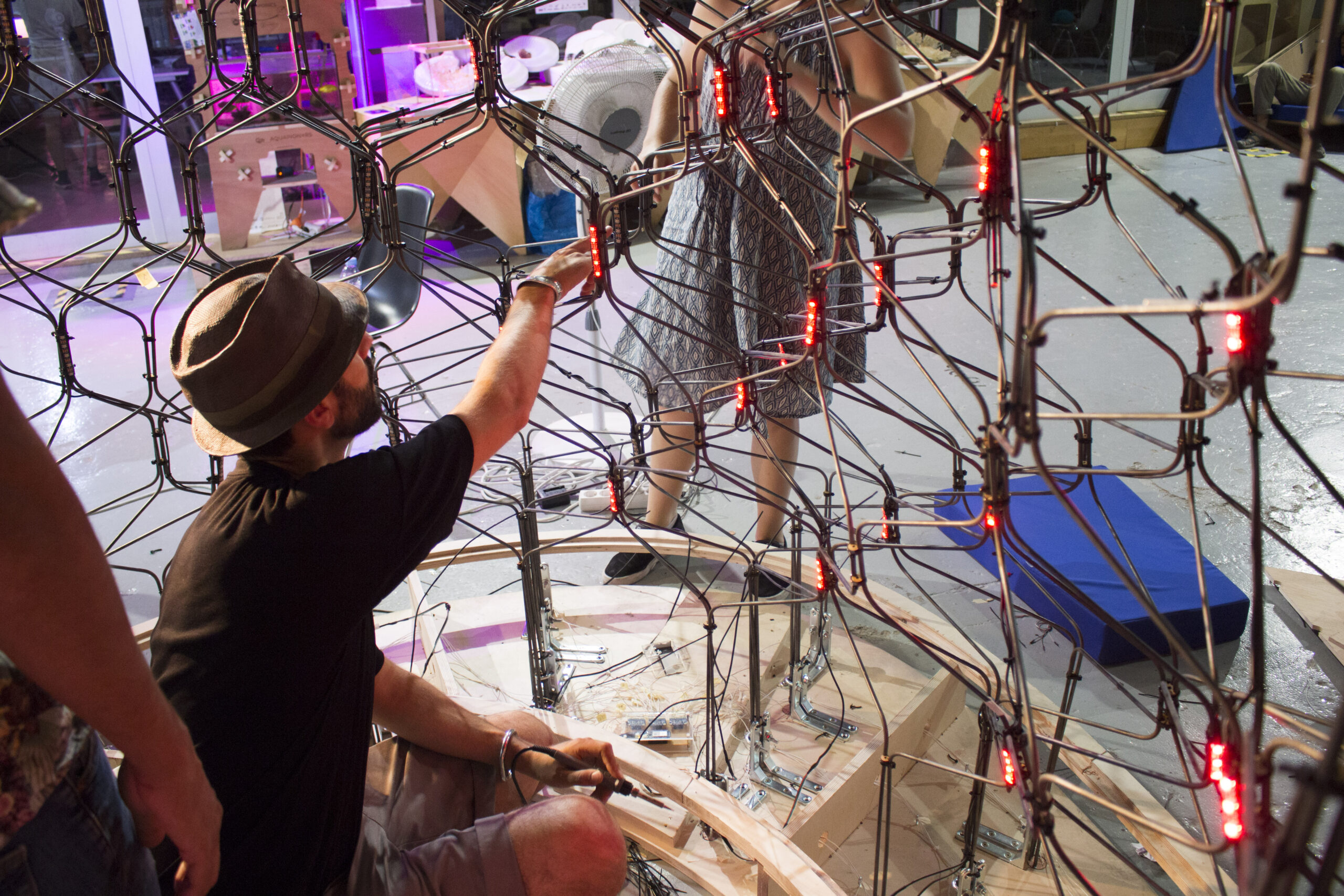 Every rod in the pavilion was bent following toolpaths derived directly from the parametric model. This digital-to-physical pipeline allowed for rapid iteration, with robotic motion fine-tuned to match the material’s behavior. Jigs and fixtures were CNC-milled to ensure precise assembly, while interactive components—programmed through microcontrollers and embedded sensors—brought the structure to life through tactile feedback.
