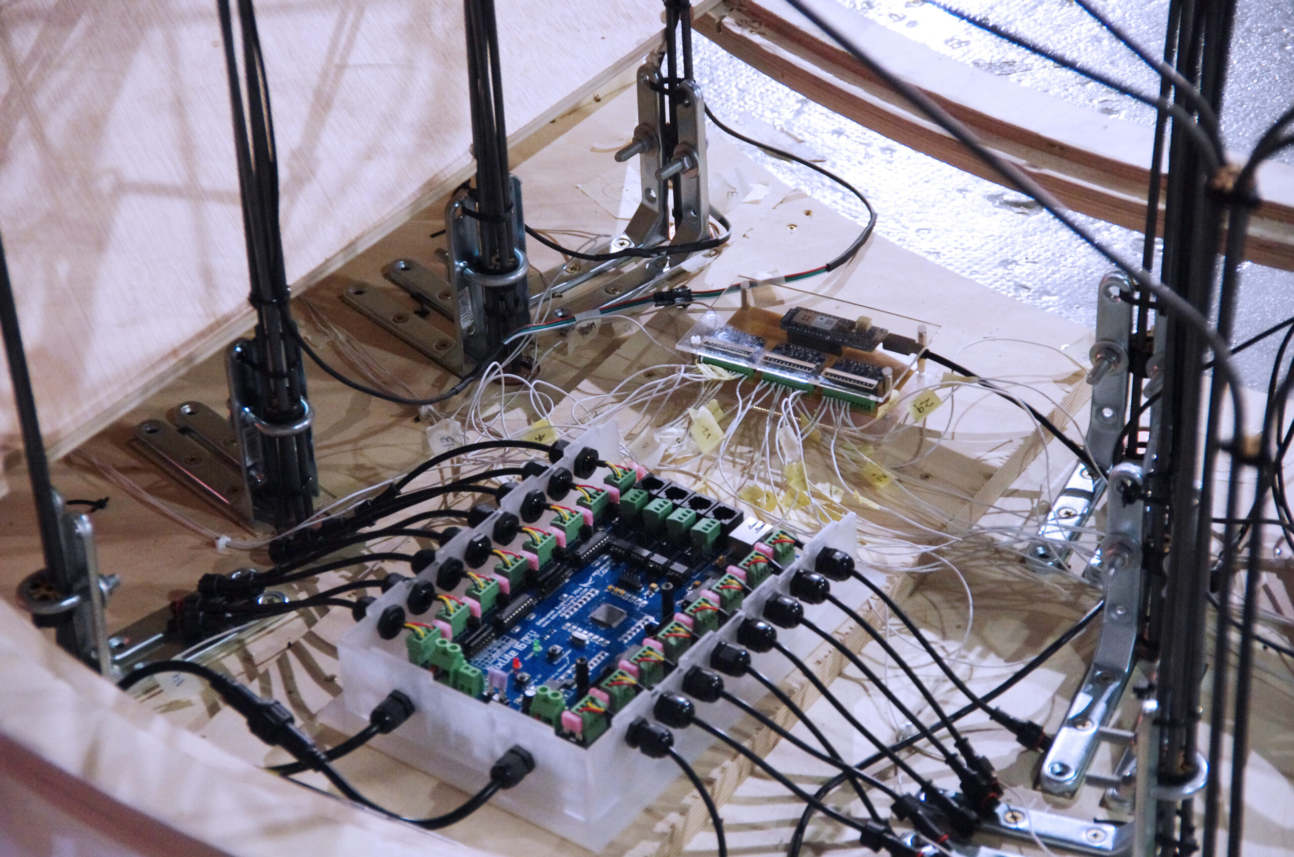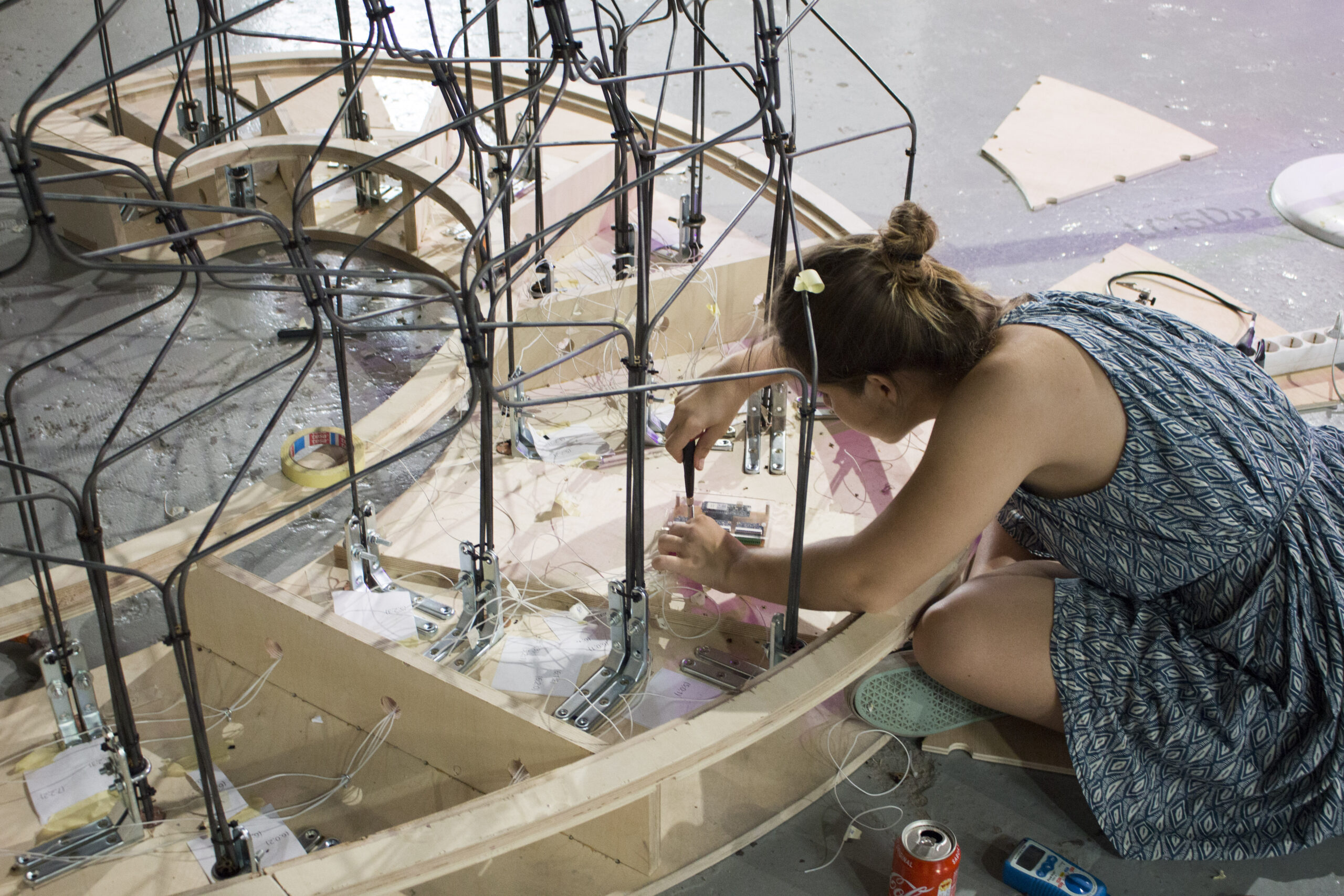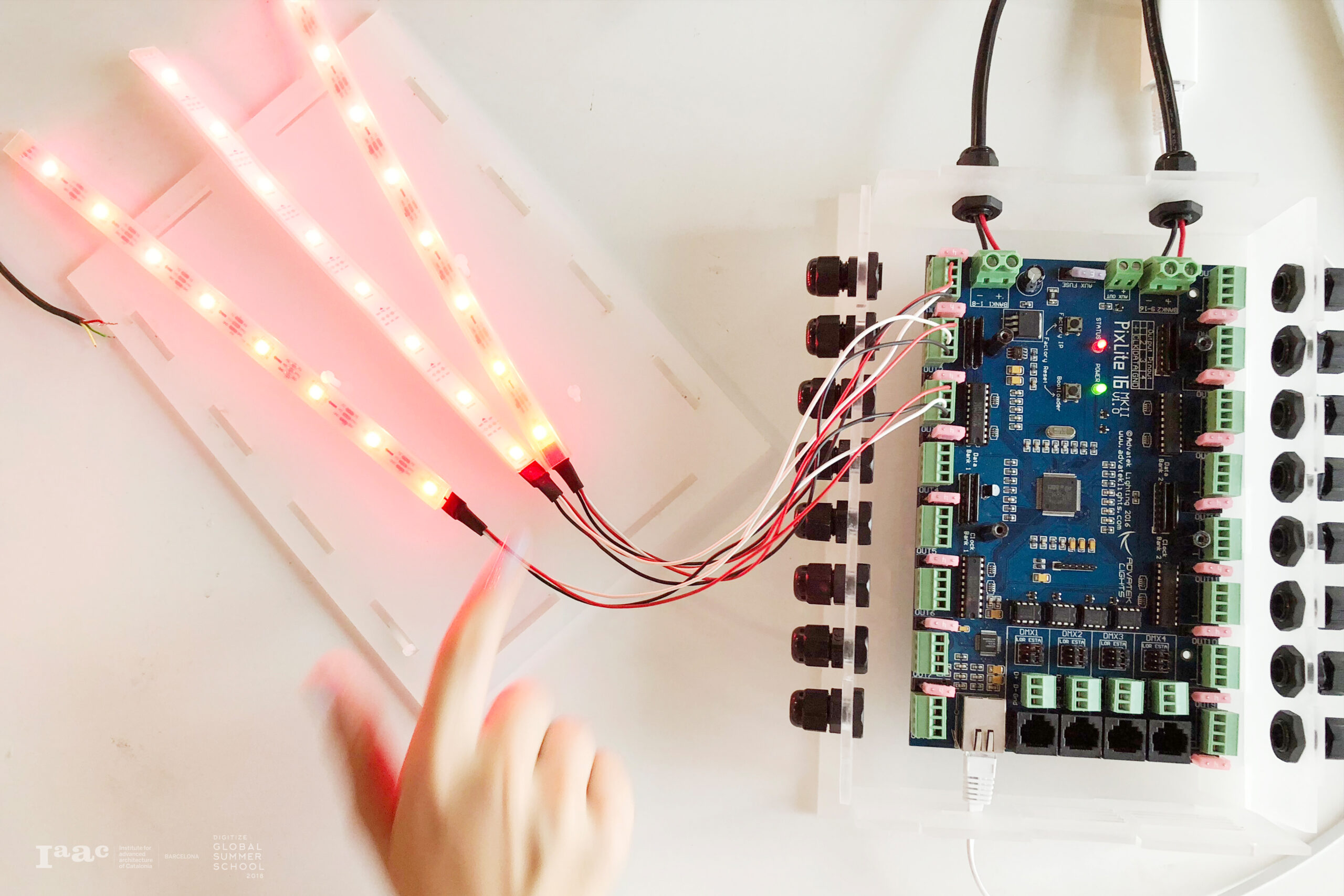 Every rod in the pavilion was bent following toolpaths derived directly from the parametric model. This digital-to-physical pipeline allowed for rapid iteration, with robotic motion fine-tuned to match the material’s behavior. Jigs and fixtures were CNC-milled to ensure precise assembly, while interactive components—programmed through microcontrollers and embedded sensors—brought the structure to life through tactile feedback.