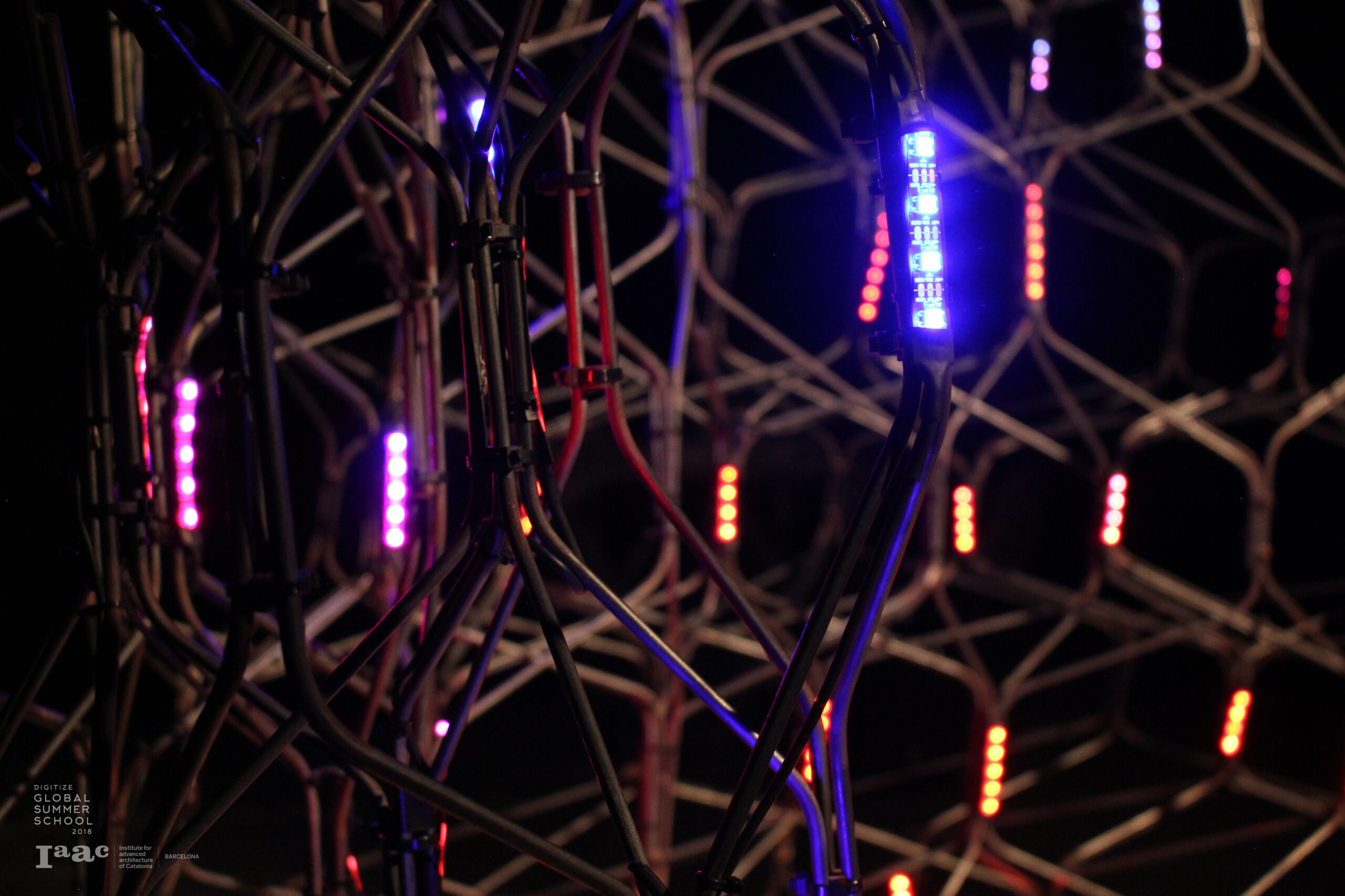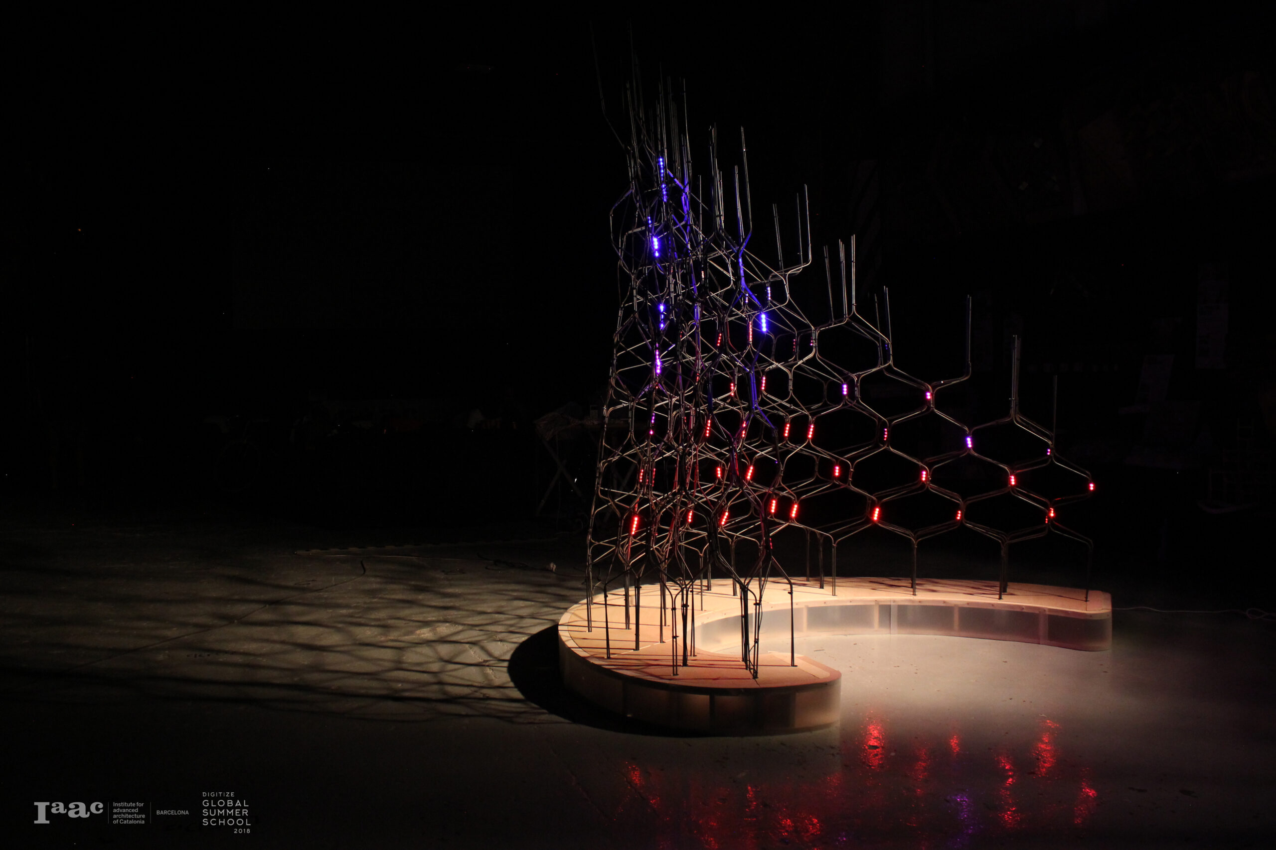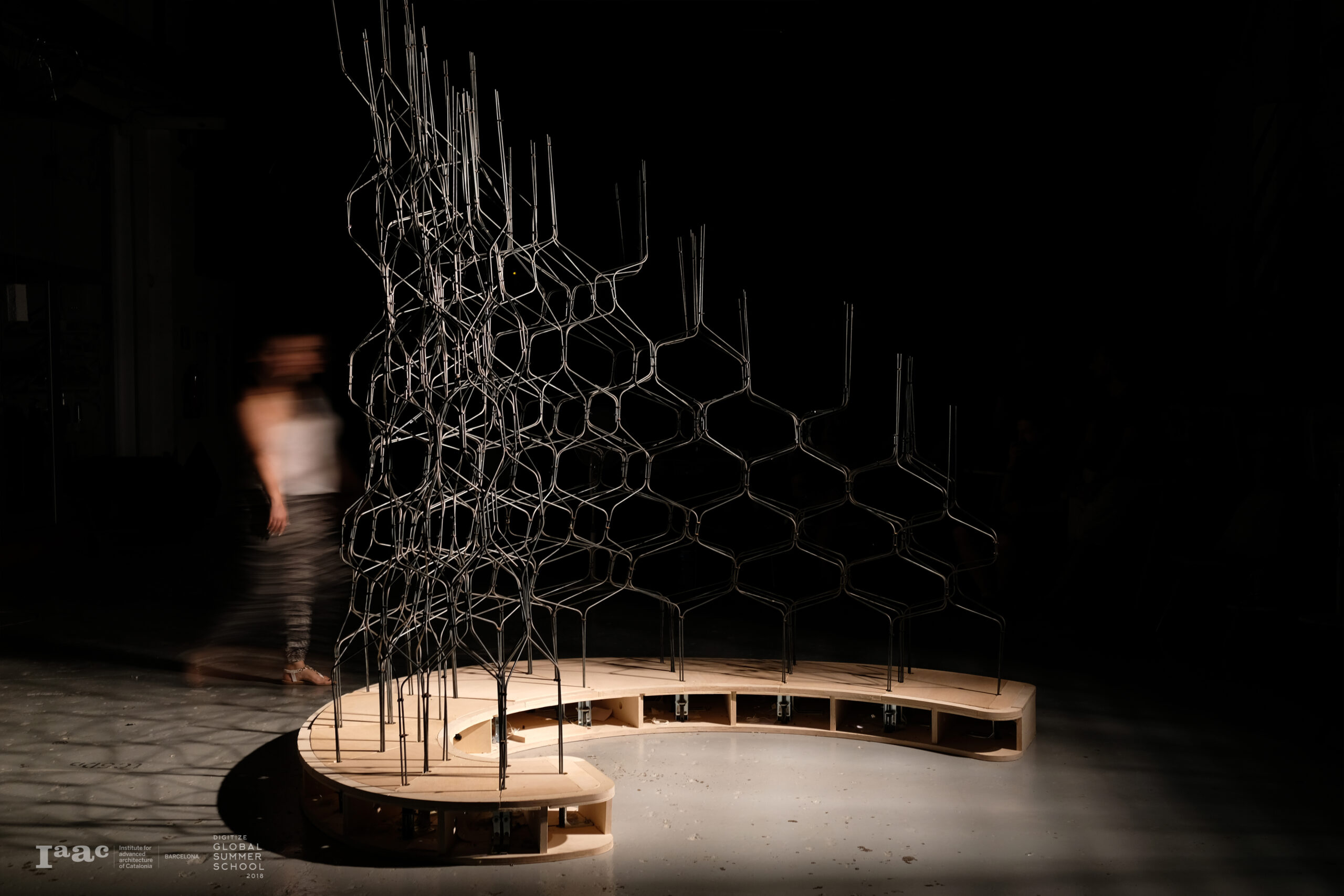 Developed during the Global Summer School at IAAC, Barcelona, Metallic Spaces is the result of a two-week intensive workshop exploring advanced design strategies and large-scale robotic manufacturing. Participants investigated the feedback loop between digital modeling and physical realization, engaging in hands-on experimentation across computational design, robotic toolpath generation, and interactive systems.
